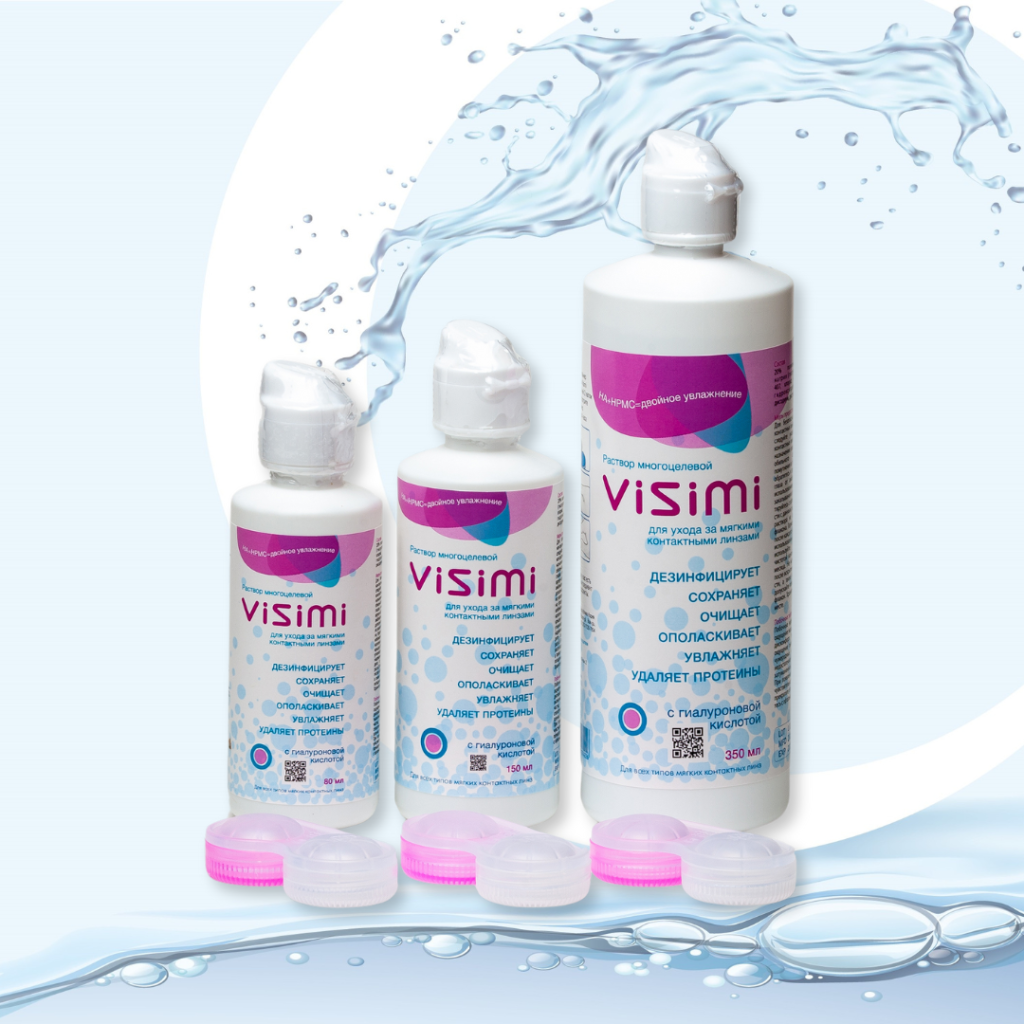 Visimi — универсальный раствор для всех типов мягких контактных линз, который: